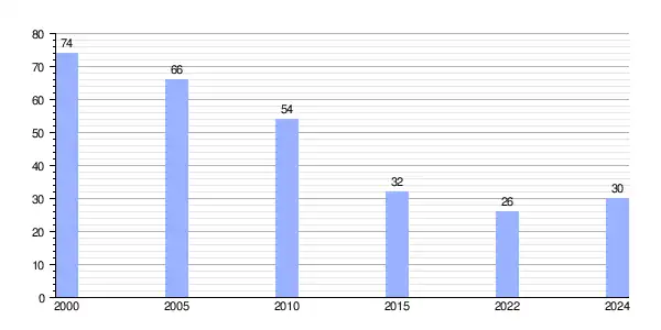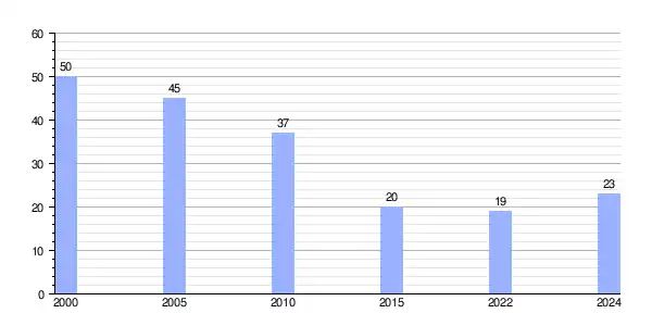 | Gráfica de evolución demográfica de Bendilló (aldea) entre 2000 y 2024 |