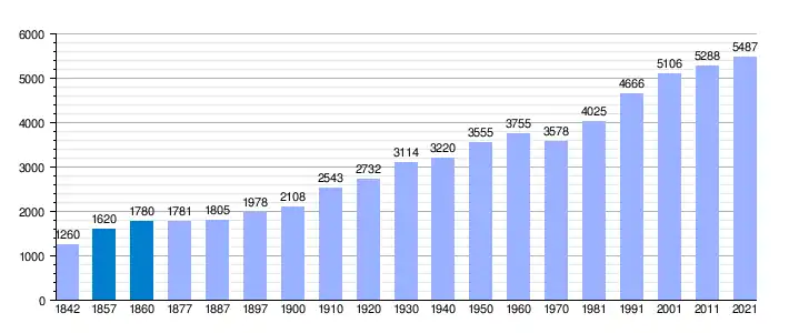 | Gráfica de evolución demográfica de Benejúzar[8] entre 1842 y 2021 |