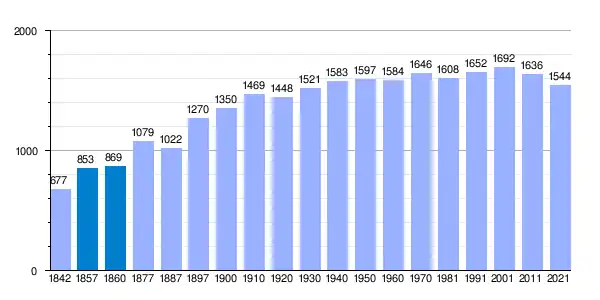 La población aumentó muy lentamente desde el siglo XVIII hasta 1950 en que se estabilizó, habiendo pasado de 1035 habitantes a finales del XVIII a 1646 en el año 1994.