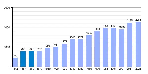 | Gráfica de evolución demográfica de Benifairó de los Valles[8] entre 1842 y 2021 |
