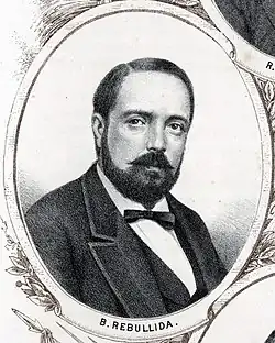 - ↑ a b «D. Benigno Rebullida». Los Diputados pintados por sus hechos: Colección de estudios biográficos sobre los elegidos por el sufragio universal en las Constituyentes de 1869 II. Madrid: R. Labajos y Compañía, editores. 1869. pp. 435-437.