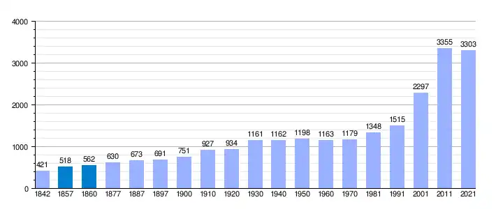 | Población | 750 | 918 | 914 | 1.118 | 1.121 | 1.166 | 1.134 | 1.136 | 1.344 | 1.507 | 1.866 | 3.541 | 3.707 | 3655 | 4262 | ||||