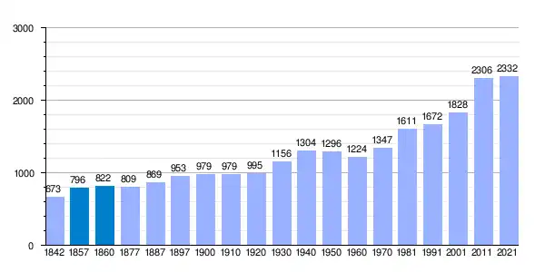 | Gráfica de evolución demográfica de Benisanó[6] entre 1842 y 2021 |
