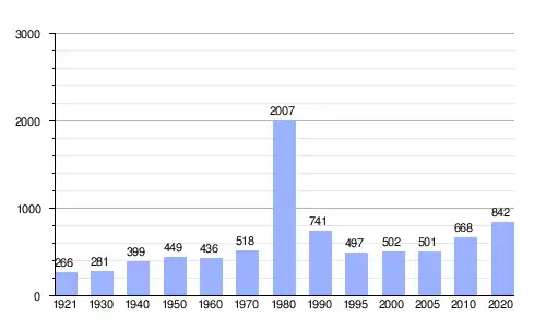 En 2020 registró una población de 842 personas, lo que corresponde al 2.11 % de la población municipal.[6]​ De los cuales 417 son hombres y 425 son mujeres.[6]