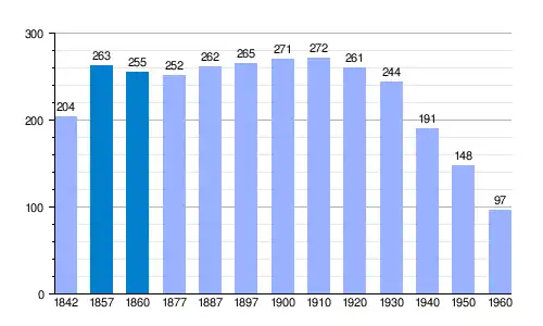 | Gráfica de evolución demográfica de Bentué de Rasal[1] entre 1842 y 1960 |
