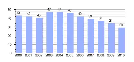 | Gráfica de evolución demográfica de Berasáin entre 2000 y 2010 |