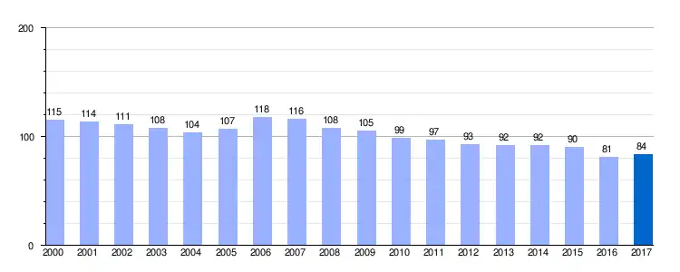 | Gráfica de evolución demográfica de Bercedo entre 2000 y 2017 |