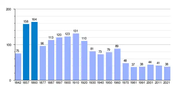 | Gráfica de evolución demográfica de Berceruelo[4] entre 1842 y 2021 |