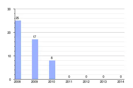 | Gráfica de evolución de la deuda viva del ayuntamiento entre 2008 y 2014 |