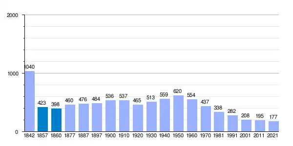 | Gráfica de evolución demográfica de Bercianos del Real Camino[6] entre 1842 y 2021 |