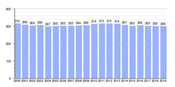 | Gráfica de evolución demográfica de Berdía entre 2000 y 2019 |