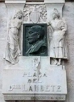 La enorme popularidad ganada por Landete, no sólo en los círculos científicos, profesionales y docentes, ya propició que el 29 de julio de 1923 se le dedicara, en su ciudad natal, una importante plaza. En el acto se descubrió un relieve escultórico, sufragado por el colectivo de odontólogos, con el perfil del científico. Este agradeció el inusual gesto con una persona viva contestando a las autoridades en un discurso pronunciado en valenciano.[13][14]
