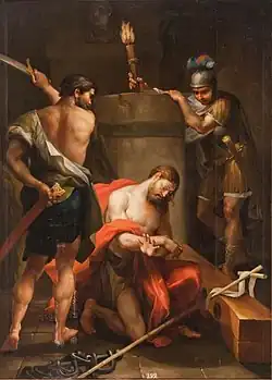 Regresó a Madrid en 1769 para recuperar el contacto con Mengs y la Academia, en la que fue admitido como individuo de mérito en 1774.[6] La Degollación de San Juan Bautista (Real Academia de San Fernando), pintada con corrección de dibujo, es posiblemente una donación hecha a la institución con motivo de su ingreso en ella. De fecha próxima ha de ser el retrato del marqués de Sarria, consiliario de la Real Academia, conservado también en ella, al que siguió según Ceán Bermúdez un retrato de Carlos III para el consulado de Santander. Contribuyó con algunos dibujos a la edición del Quijote preparada por la Real Academia Española, impresa por Joaquín Ibarra en 1780, y proporcionó asimismo seis dibujos para la edición de Antonio Sancha de las Novelas ejemplares (1783).[7]