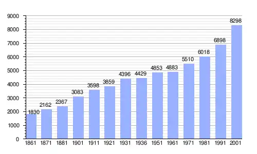 | Gráfica de evolución demográfica de Bernareggio entre 1861 y 2001 |