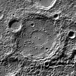 - ↑ Baker, D. M. H.; Head, J. W.; Schon, S. C.; Ernst, C. M.; Prockter, L. M.; Murchie, S. L.; Denevi, B. W.; Solomon, S. C.; Strom, R. G. (2011). «The transition from complex crater to peak-ring basin on Mercury: New observations from MESSENGER flyby data and constraints on basin formation models». Planetary and Space Science 59 (15): 1932-1948. Bibcode:2011P&SS...59.1932B. doi:10.1016/j.pss.2011.05.010. Archivado desde el original el 18 de diciembre de 2013.