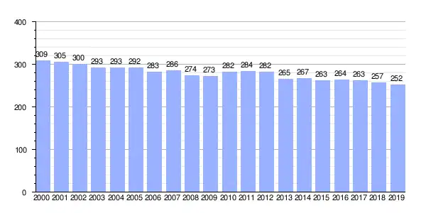 | Gráfica de evolución demográfica de Berreo entre 2000 y 2019 |