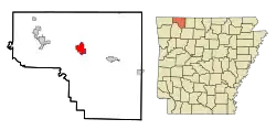 ![]() Localización en el condado de Carroll y en el estado de Arkansas | ||