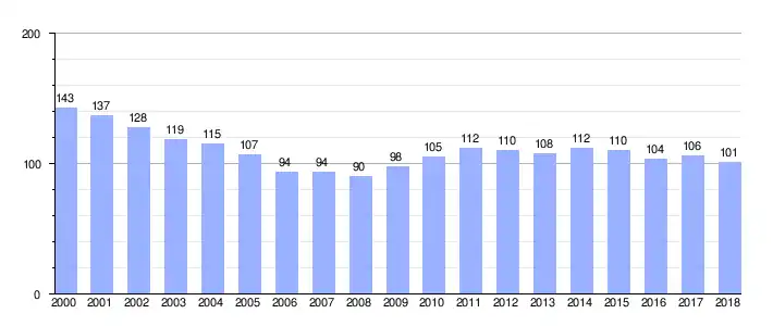 Población de derecho (2000-2012) según los censos de población del INE a 1 de enero de cada año.[7] |