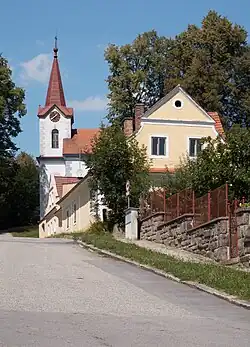 Se encuentra ubicada en al sur de la región, en la zona de la selva de Bohemia, al sur de la ciudad de Praga, de la orilla del río Moldava —el más largo del país, afluente del río Elba— y al norte de la frontera con Austria.[1]