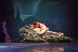 - En varias adaptaciones contemporáneas del cuento de hadas de La Bella Durmiente, incluida la película animada de Disney de 1959, la maldición del sueño profundo de la Princesa Aurora (y el sueño profundo en todo el reino) se rompe con el beso de amor verdadero del Príncipe Felipe.[16] En el recuento de 2014 de Maléfica, Aurora revive con un beso en la frente de Maléfica (Angelina Jolie), un indicador de su amor maternal por ella.[17]