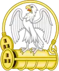El grifo de Eduardo III es una antigua bestia mítica. Fue considerada una criatura benéfica, que significa coraje y fortaleza combinada con tutela, vigilancia, rapidez y visión aguda. Fue estrechamente asociado con Eduardo III, que lo grabó en su sello privado. El escudo muestra la Torre Redonda del Castillo de Windsor (donde nació Eduardo III) con el estandarte real sobre la torreta, rodeado por dos ramas de roble coronadas por la corona real.[3] |