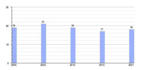| Gráfica de evolución demográfica de Betán (aldea) entre 2000 y 2021 |