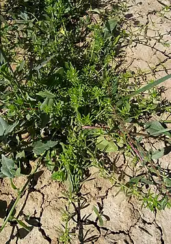 Se trata de una planta glabra y ramificada desde la base, con tallos simples o ramificados, decumbentes o erectos, de hasta 40 cm.