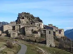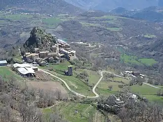La estructura del pueblo es típicamente medieval, a lo largo de una calle bajo un promontorio rocoso sobre el que todavía quedan restos del castillo. A las afueras se encuentran los caseríos de Casa Pallàs y Casa Francino.[5]