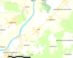 Bey es una población y comuna francesa, en la región de Borgoña, departamento de Saona y Loira, en el distrito de Chalon-sur-Saône y cantón de Saint-Martin-en-Bresse.