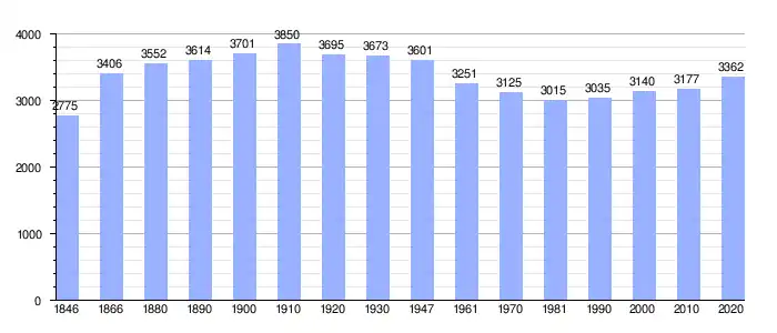 Todos los datos históricos relativos al actual municipio, el siguiente gráfico refleja su evolución demográfica, incluyendo municipios después de efectuada la fusión el 1 de enero de 1977.