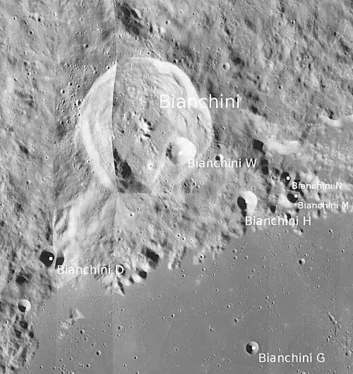 Por convención estos elementos son identificados en los mapas lunares poniendo la letra en el lado del punto medio del cráter que está más cerca de Bianchini.