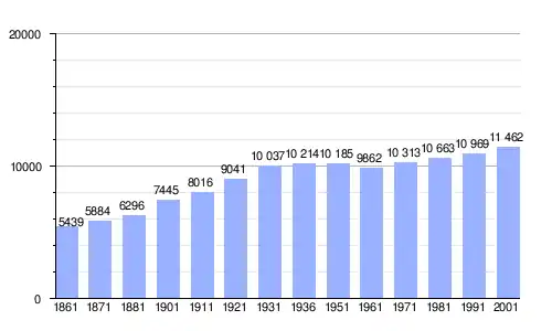 | Gráfica de evolución demográfica de Bibbiena entre 1861 y 2001 |