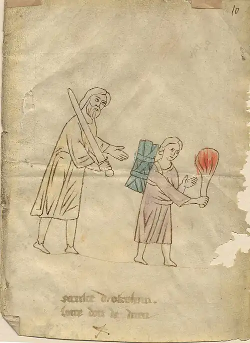 Sacrificio de Abraham. Fragemento de manuscrito, 13,5 x 18,5 cm. Ilustración del siglo XV añadida posteriormente al original.