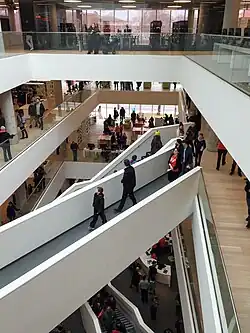 La nueva biblioteca abrió en diciembre de 2014 y se ha convertido en un lugar de reunión muy popular. Además de una colección de libros significativamente más grande que la de la biblioteca anterior, el nuevo edificio alberga una amplia gama de servicios que incluyen cafés, un auditorio y salas comunitarias. La impactante arquitectura se caracteriza por el voladizo del quinto piso sobre la plaza de entrada, un atrio central atravesado por escaleras, y la transparencia y relación del edificio con el contexto urbano.