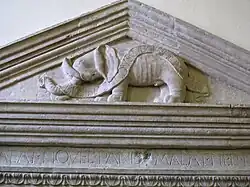 Sobre el tímpano se observa un elefante, emblema de la familia Malatesta:
