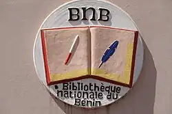 ![]() Fachada de la entrada a la Biblioteca Nacional de Benín. | ||