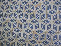 La bóveda se compone de un largo rectángulo central afirmada por velas y columnas de bóveda reducidas a la mitad. La decoración se inspira en el Domus Aurea, redescubierto en aquella época y frecuentemente imitada, pero siguiendo un estilo más medieval, con cruceros. Los lados largos tienen cuatro velas en fondo amarillo y tres columnas con fondo azul, mientras que los lados cortos tienen un penacho amarillo y dos velas rojas. Los colores brillantes son cubiertas por un denso grutesco a la antigua.[1]