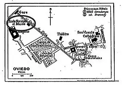 Plano de Oviedo con la situación de Escuelas Normales y Museo en 1908