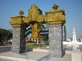 Imagen usada para identificar las celebraciones del Bicentenario, colocada en una plaza de San Salvador.