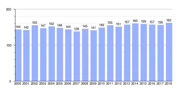 | Gráfica de evolución demográfica de Biduído de Abaixo entre 2000 y 2018 |