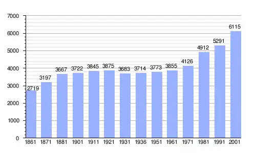 | Gráfica de evolución demográfica de Bientina entre 1861 y 2001 |