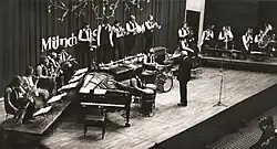 También en el mundo de la música afro-cubana, especialmente a partir de los años 1940, se impuso el formato de big band, en un estilo de fusión con el jazz que se denominó cubop. El representante más claro de esta línea fue la banda que, en 1940, reunió el trompetista Mario Bauzá, junto al cantante Machito, en Nueva York, bajo el nombre de The Afro-Cubans, y que grabó con músicos como Charlie Parker o Dizzy Gillespie.[32] Otras formaciones latinas, tomaron posteriormente el relevo, como las de Tito Puente, Chano Pozo o Tito Rodríguez.