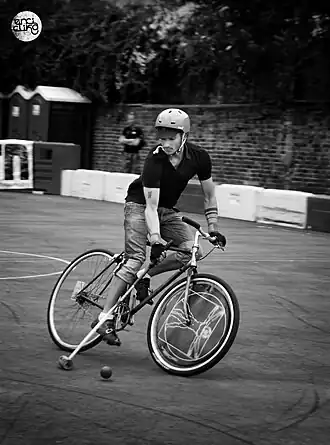 Puede utilizarse cualquier bicicleta convencional, muchos jugadores adaptan las suyas e inclusive existen marcos o cuadros y bicicletas diseñadas especialmente para el juego. Algunas características de diseño son poca distancia entre ejes, poca distancia entre rueda trasera y pedalier, ángulo más bien vertical en el tubo de frente, frenos en ambas ruedas con un solo comando, tapas de plástico en las ruedas para evitar que el taco o maza se trabe en los rayos o radios.
