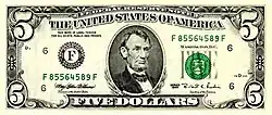 ![]() Anverso del billete de cinco dólares. | ||