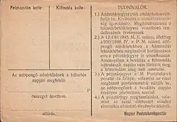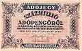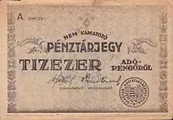 La Caja de Ahorros Postal de Hungría emitió certificados de ahorro adópengő sin intereses ( nem kamatozó pénztárjegy ) en junio de 1946, que también sirvieron como moneda de curso legal. Fue el llamado adójegy, que tuvo valor en 1946.