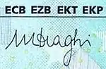- ECB (neerlandés: Europese Centrale Bank, checo: Evropská centrální banka, danés: Europæiske Centralbank, inglés: European Central Bank, letón: Eiropas Centrālā banka, lituano: Europos Centrinis Bankas, esloveno: Evropska centralna banka, eslovaco: Európska centrálna banka, sueco: Europeiska centralbanken)