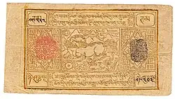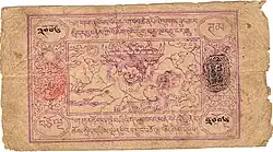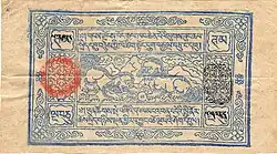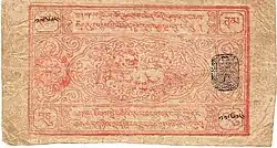 - ↑ Más conocido como tangka o tamga, su valor facial equivalía al de la rupia india de 1912.
