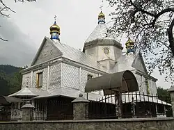 Se ubica junto al límite con la óblast de Chernivtsí marcado por el río Cheremosh, unos 20 km al este de la capital distrital Verjovyna.