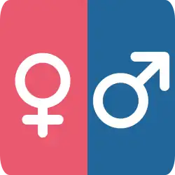 Un emoji en el que se muestran los símbolos de Venus (a la izquierda) y el de Marte (a la derecha), como también se muestran colores que normalmente se relacionan con el género, como son tonos rosados para el género femenino y los tonos azules para el género masculino.