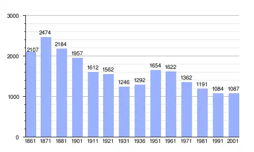 | Gráfica de evolución demográfica de Bioglio entre 1861 y 2001 |